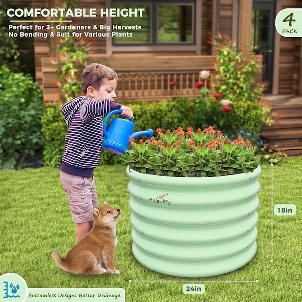 4-Pack 24 in. x 24 in. x 18 in. Outdoor Mint Green Round Galvanized Steel and Metal Eco-Safe Planter Box
