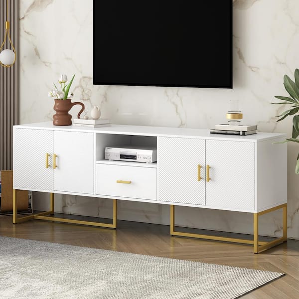68.9 in. TV Stand Modern Entertainment Center Media Console with Drawer, 2 Cabinets and Metal Legs to 79 in.