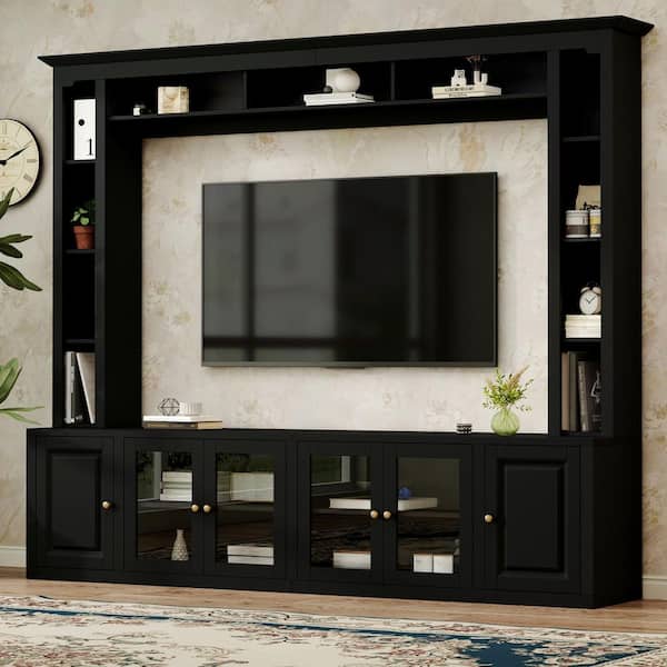 Black Entertainment Center Wall TV Stand with Cabinets and Open Shelves Fits TVs up to 78 in.