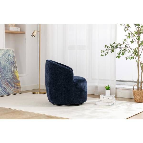 Blue Chenille Fabric Swivel Accent Armchair with Black Powder Coating Metal Ring