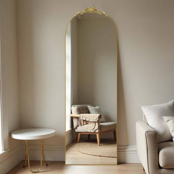Gold 21 in. W x 64 in. H Arched Wood Framed Mirror for Bedroom Entryway
