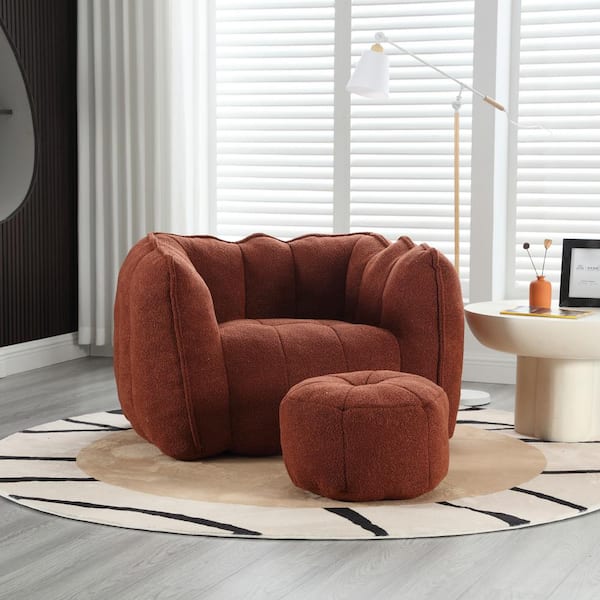Red Chenille Polyester Soft Bean Bag Chair with High Resilient Foam for Living Room and Bedroom