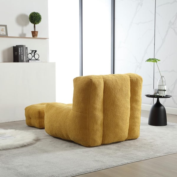 Yellow Velvet Polyester Bean Bag Chair with Ottoman for Living Room and Bedroom