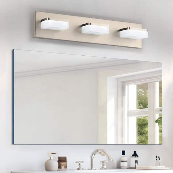 20.5 in. 3 Light Nickel Vanity Light Bar with Dimmable 5500K Light and 270° Swivel Range Acrylic Lampshade