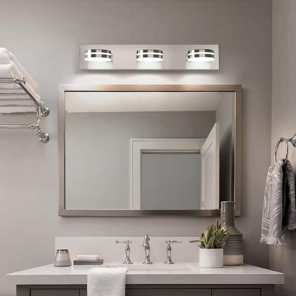 23.6 in. 3-Light Nickel LED Vanity Light with Dimmable 5500K Light and 270° Swivel Range Acrylic Lampshade