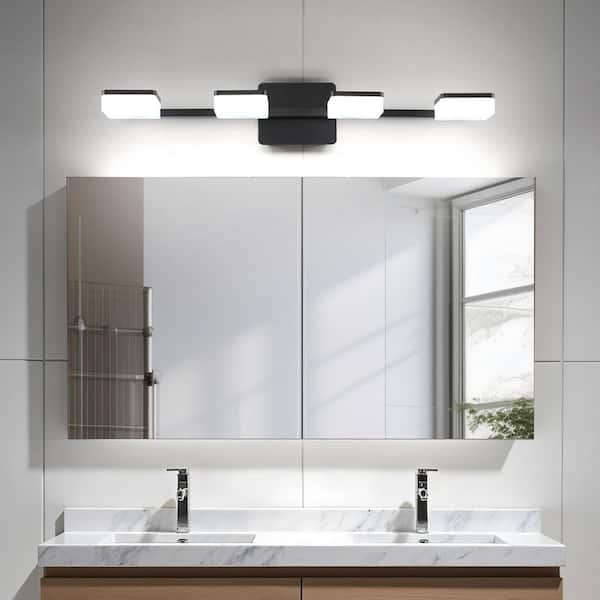 27.36 in. 4-Light Black LED Vanity Light with Dimmable 5500K Light and 350° Swivel Range Acrylic Lampshade