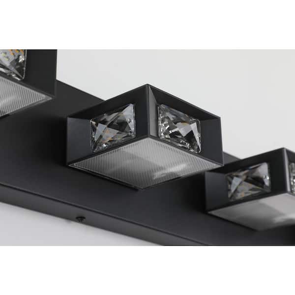 27.95 in. Black 4-Light Dimmable Crystal Bathroom Vanity Light with 5-CCT Adjustable Switch and 350° Swivel Range