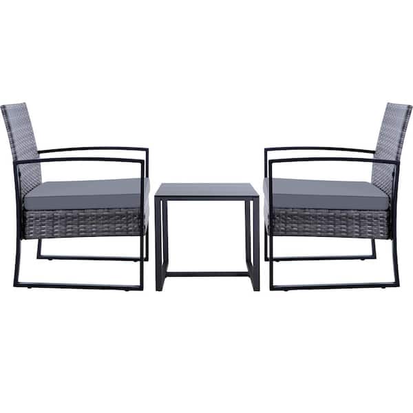 Cute 3-Piece Gray Wicker Patio Conversation Set with Gray Cushions