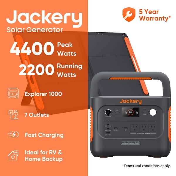 1500-Watt Output/3000-Watt Peak Push Button Start Solar Generator 1000V2 with 1-Solar Panel 100-Watt for Outdoors