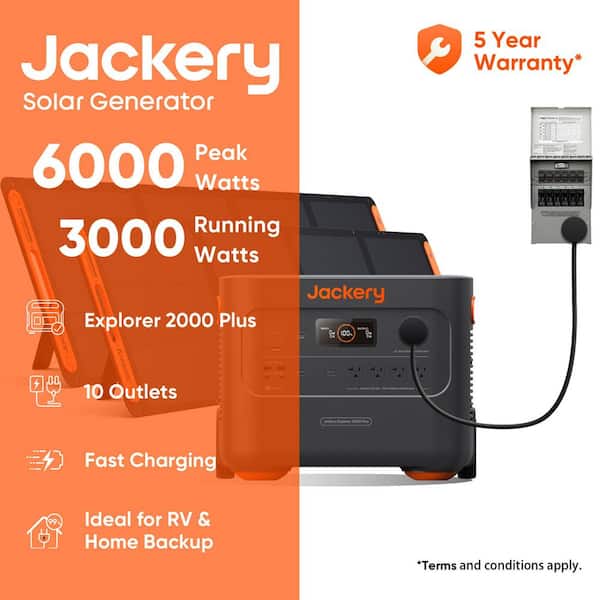 3000W Rated/6000W Peak Output Push Button Start Solar Generator 2000 Plus, w/Two 200W Solar Panels and Transfer Switch