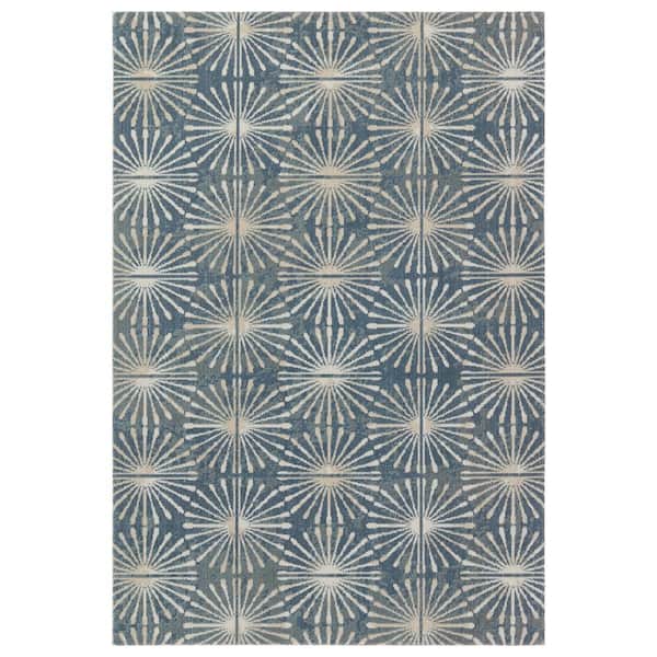 Calvary 5 ft. x 8 ft. Blue/Cream Geometric Indoor/Outdoor Area Rug