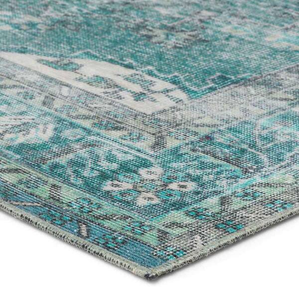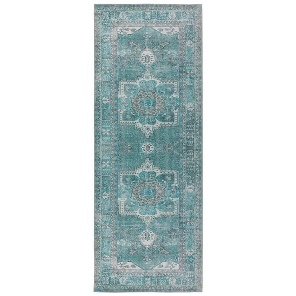 Machine Washable Tamara teal 3 ft. x 8 ft. Medallion Area Rug