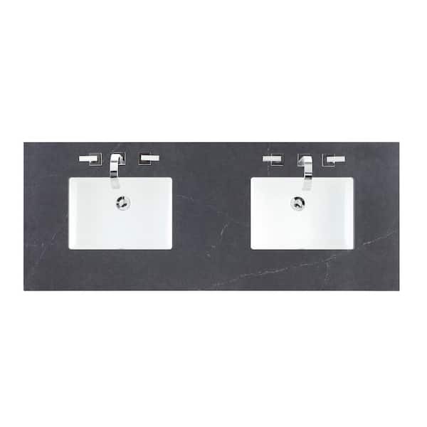 60 in. W x 23.5 in. D Double Basin Vanity Top in Charcoal Soapstone Silestone Quartz with White Basin