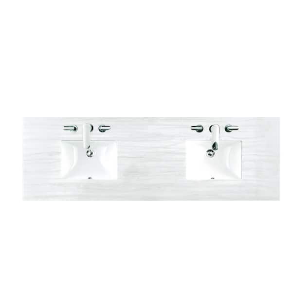 72 in. W x 23.5 in. D x 34.3 in. H Double Basin Vanity Solid Surface Top in Arctic Fall with White Basin