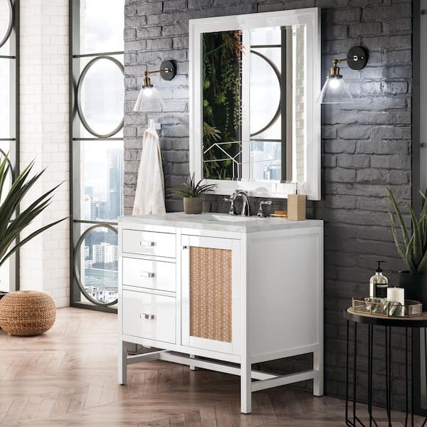 Addison 36.0 in. W x 23.5 in. D x 35.5 in. H Single Bathroom Vanity Glossy White and Victorian Silver Quartz Top