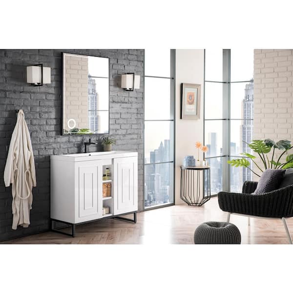 Alicante' 39.4 in. W x 15.6 in. D x 35.5 in. H Bath Vanity in Glossy White with White Glossy Resin Top