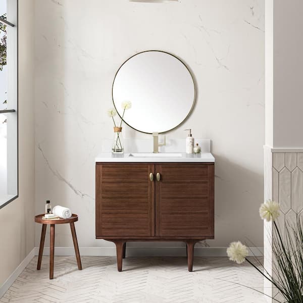 Amberly 36.0 in. W x 23.5 in. D x 34.7 in. H Bathroom Vanity in Mid-Century Walnut with White Zeus Silestone Quartz Top