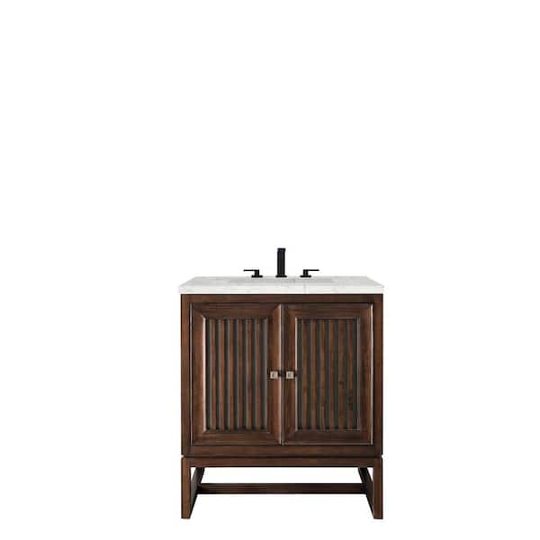 Athens 30 in. W x 23.5 in. D x 34.5 in. H Bath Vanity in Mid Century Acacia with Eternal Jasmine Pearl Quartz Top