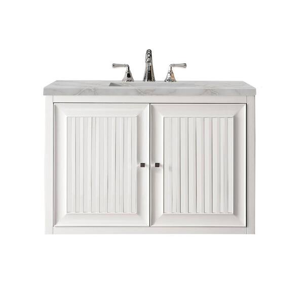 Athens 36.0 in. W x 23.5 in. D x 34.5 in. H Single Bathroom Vanity Glossy White and Victorian Silver Quartz Top