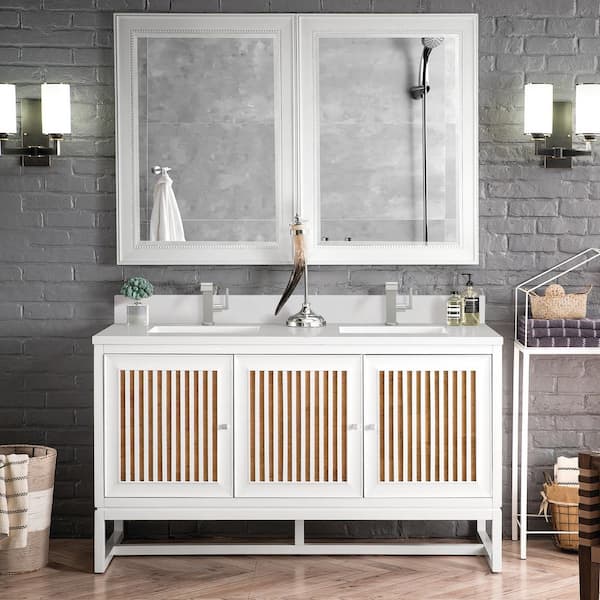 Athens 60.0 in. W x 23.5 in. D x 34.5 in. H Bathroom Vanity in Glossy White with White Zeus Silestone Quartz Top