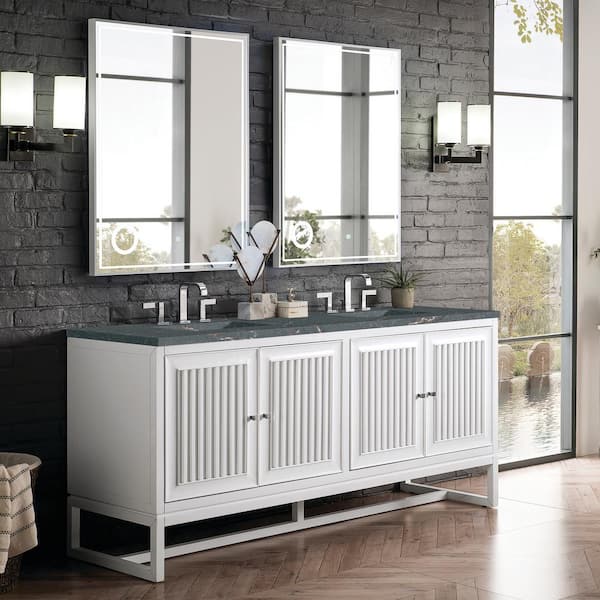 Athens 72.0 in. W x 23.5 in. D x 34.5 in. H Bathroom Vanity in Glossy White with Parisien Bleu Silestone Quartz Top