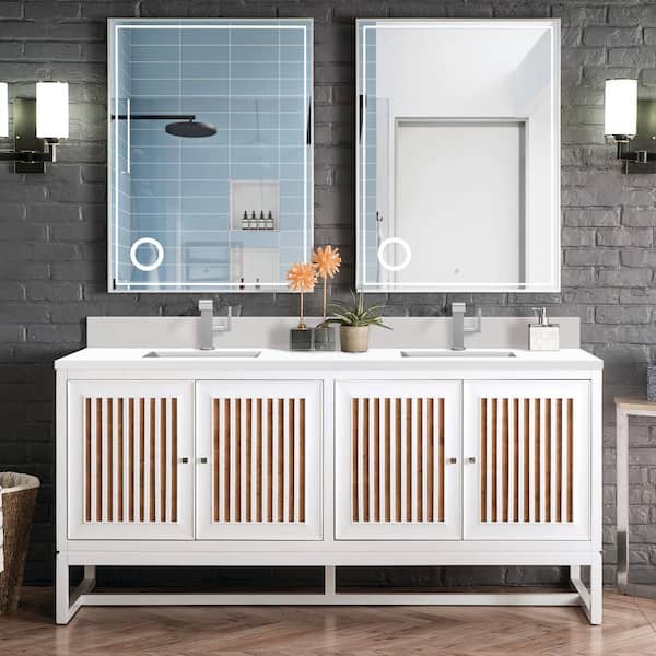 Athens 72.0 in. W x 23.5 in. D x 34.5 in. H Bathroom Vanity in Glossy White with White Zeus Silestone Quartz Top