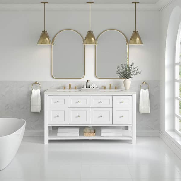 Breckenridge 60.0 in. W x 23.5 in. D x 34.25 in. H Double Bath Vanity in Bright White with Lime Delight Quartz Top