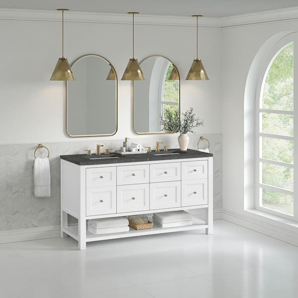 Breckenridge 60.0 in. W x 23.5 in. D x 34.25 in. H Double Bath Vanity in Bright White with Quartz Parisien Bleu Top