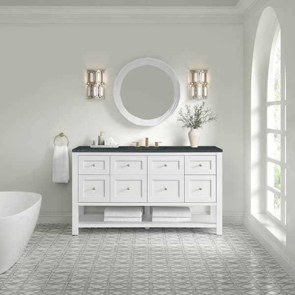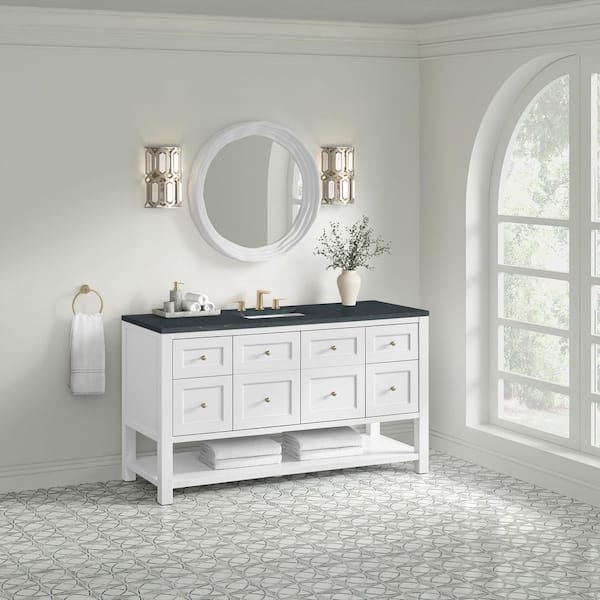 Breckenridge 60.0 in. W x 23.5 in. D x 34.25 in. H Single Bath Vanity in Bright White with Quartz Charcoal Soapstone Top