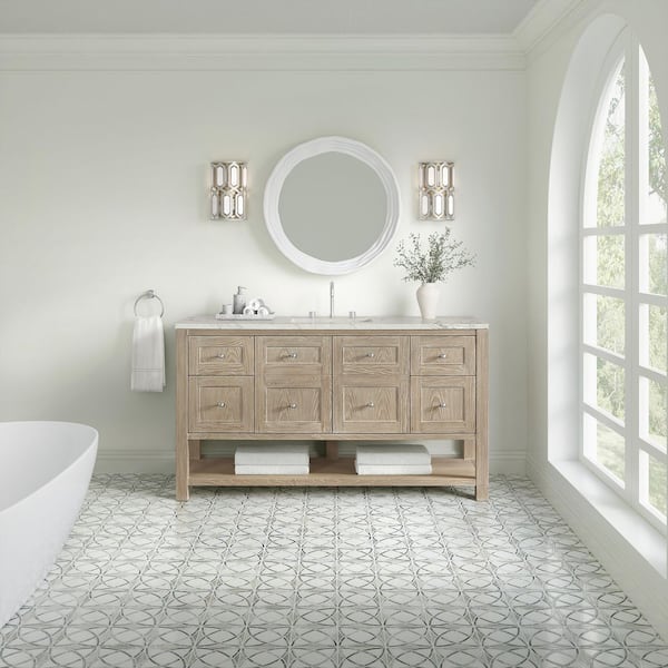 Breckenridge 60.0 in. W x 23.5 in. D x 34.25 in. H Single Bath Vanity in Whitewashed Oak w/ Quartz Victorian Silver Top