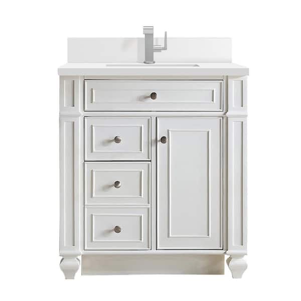 Bristol 30.0 in. W x 23.5 in. D x 34.0 in. H Single Bathroom Vanity in Bright White with White Zeus Quartz Top