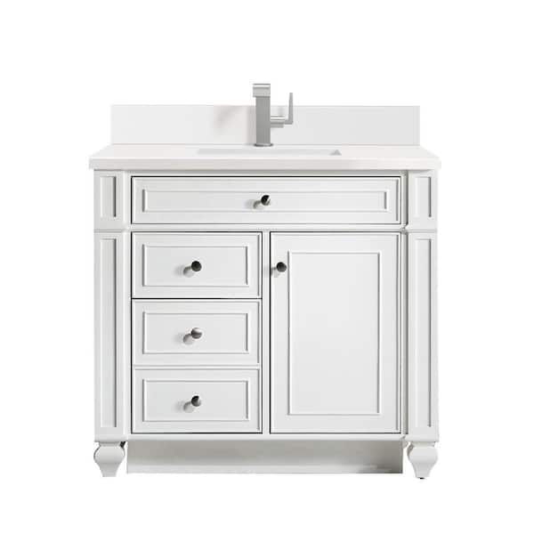 Bristol 36.0 in. W x 23.5 in. D x 34.0 in. H Bathroom Vanity in Bright White with White Zeus Silestone Quartz Top