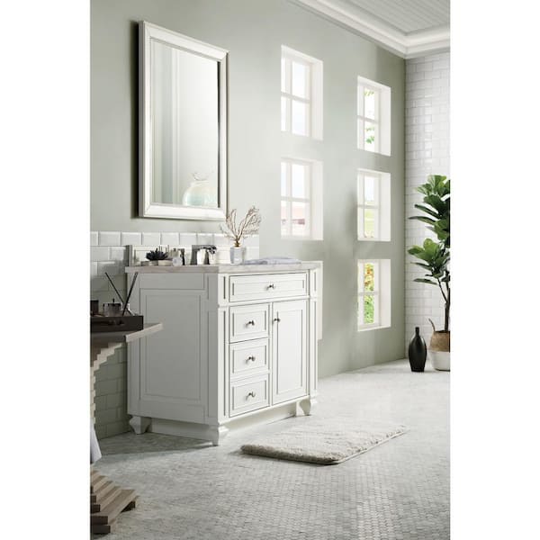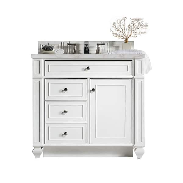 Bristol 36.0 in. W x 23.5 in. D x 34.0 in. H Single Bathroom Vanity in Bright White with Victorian Silver Quartz Top