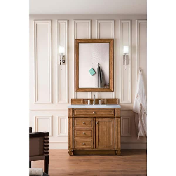Bristol 36 in. W x 23.5 in. D x 34 in. H Bathroom Vanity in Saddle Brown with Eternal Jasmine Pearl Quartz Top