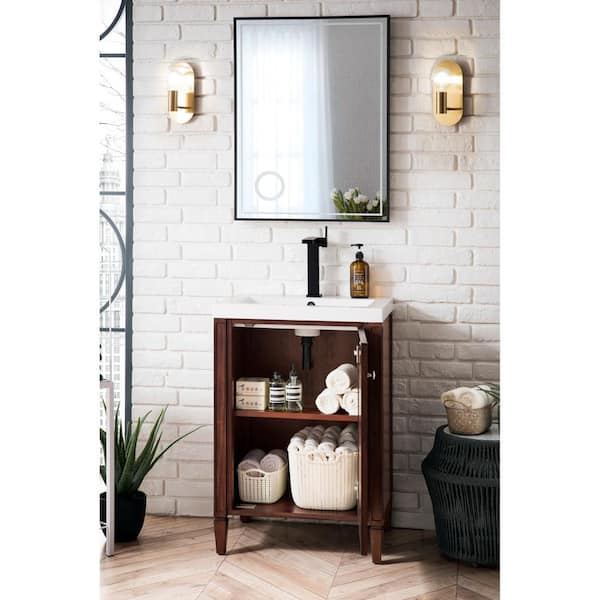 Brittania 24 in. Single Bath Vanity in Mid Century Acacia with Resin Vanity Top in White Glossy with White Basin