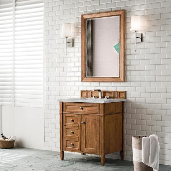 Brittany 30.0 in. W x 23.5 in. D x 34.0 in. H Bathroom Vanity in Saddle Brown with Victorian Silver Silestone Quartz Top
