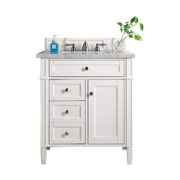 Brittany 30.0 in. W x 23.5 in. D x 34 in. H Single Bathroom Vanity in Bright White with Carrara Marble Marble Top