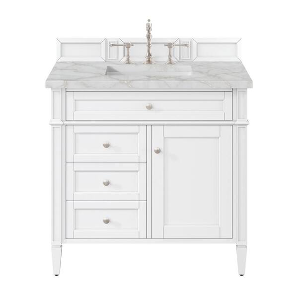 Brittany 36.0 in. W x 23.5 in. D x 34.0 in. H Bathroom Vanity in Bright White with Victorian Silver Silestone Quartz Top