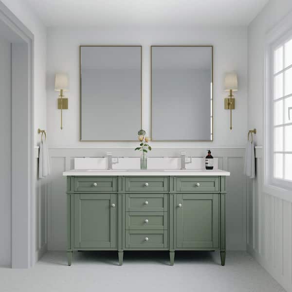 Brittany 60.0 in. W x 23.5 in. D x 33.8 in. H Bathroom Vanity in Smokey Celadon with White Zeus Silestone Quartz Top