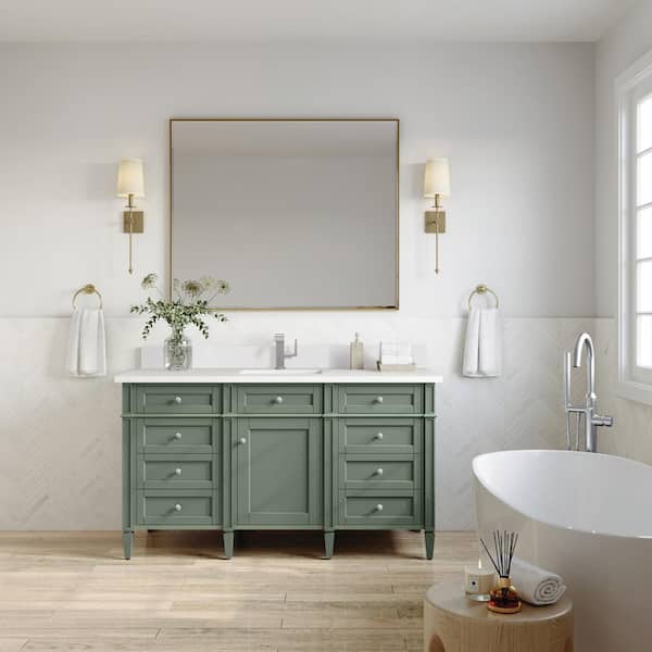 Brittany 60.0 in. W x 23.5 in. D x 33.8 in. H Single Bathroom Vanity in Smokey Celadon with White Zeus Quartz Top