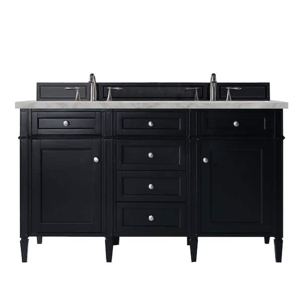 Brittany 60.0 in. W x 23.5 in. D x 34.0 in. H Bathroom Vanity in Black Onyx with Victorian Silver Silestone Quartz Top
