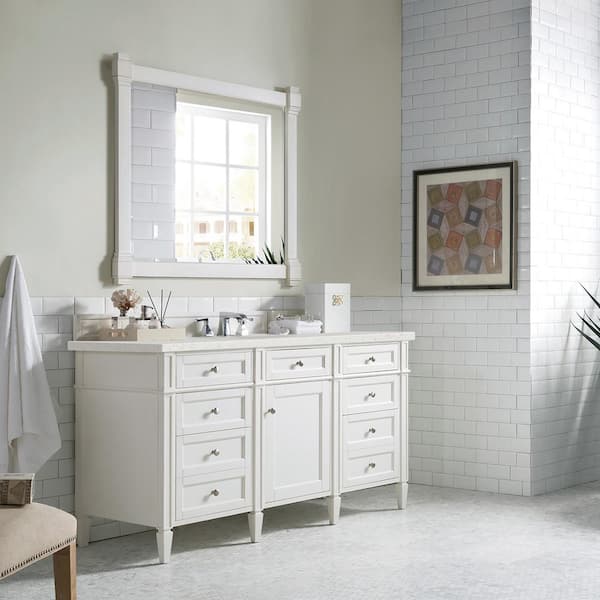 Brittany 60.0 in. W x 23.5 in. D x 34.0 in. H Bathroom Vanity in Bright White with Lime Delight Silestone Quartz Top