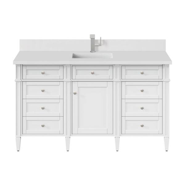 Brittany 60.0 in. W x 23.5 in. D x 34.0 in. H Single Bathroom Vanity in Bright White with White Zeus Quartz Top