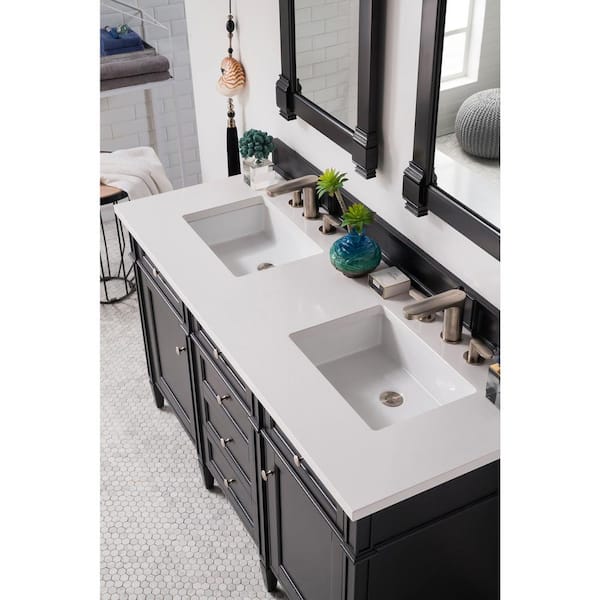 Brittany 60.0 in. W x 23.5 in. D x 34 in. H Bathroom Vanity in Black Onyx with White Zeus Quartz Top