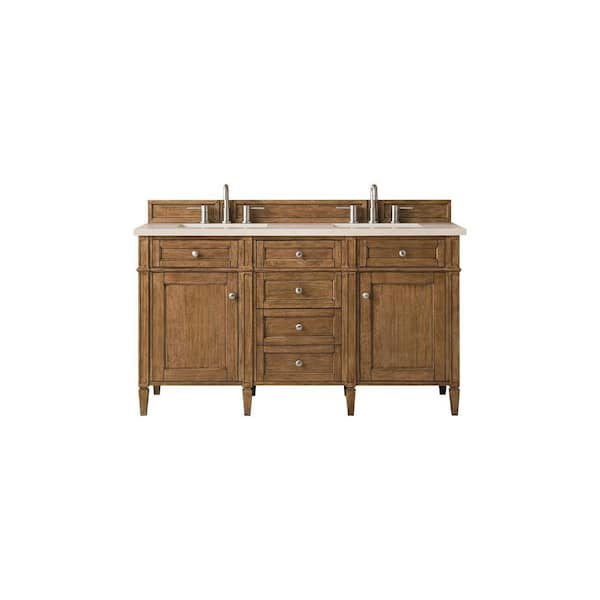 Brittany 60.0 in. W x 23.5 in. D x 34 in. H Bathroom Vanity in Saddle Brown with Eternal Marfil Quartz Top