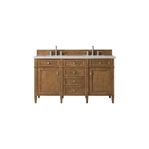 Brittany 60.0 in. W x 23.5 in. D x 34 in. H Bathroom Vanity in Saddle Brown with Eternal Serena Quartz Top