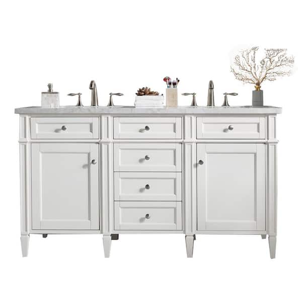 Brittany 60.0 in. W x 23 in. D x 34 in. H Double Bath Vanity in Bright White with Arctic Fall Solid Surface Top