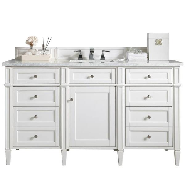 Brittany 60.0 in. W x 23 in. D x 34 in. H Single Bath Vanity in Bright White with Carrara White Marble Top