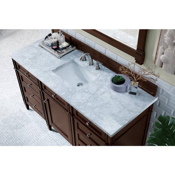 Brittany 60 in. W x 23.5 in.D x 34 in. H Single Bath Vanity Burnished Mahogany with Marble Top in Carrara White