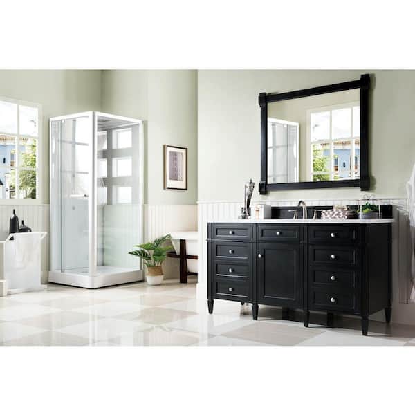 Brittany 60 in. W x 23.5 in.D x 34 in. H Single Bath Vanity in Black Onyx with Quartz Top in Eternal Jasmine Pearl